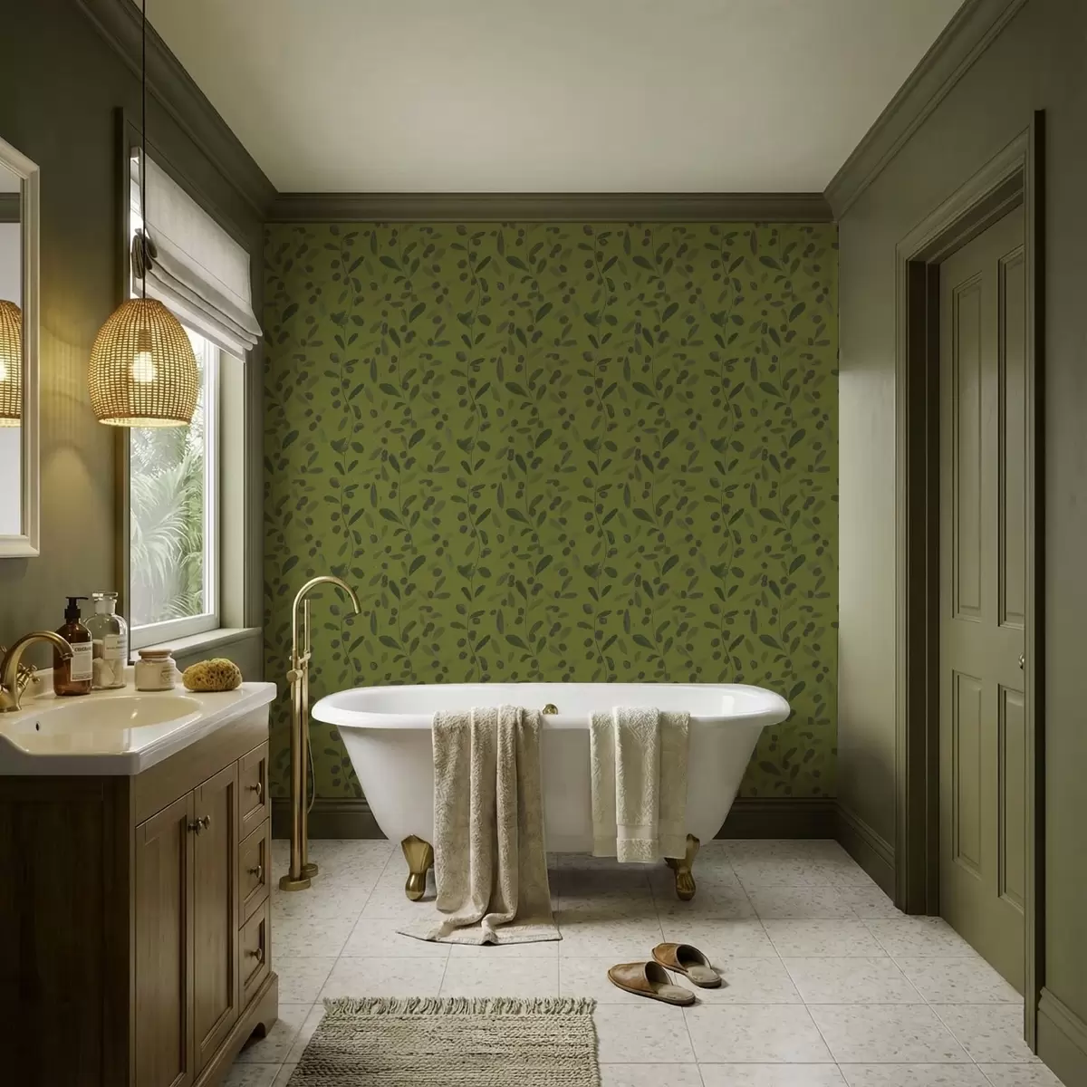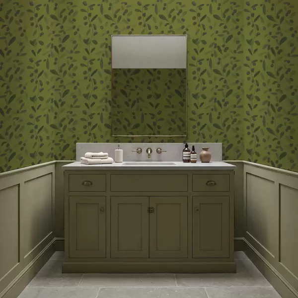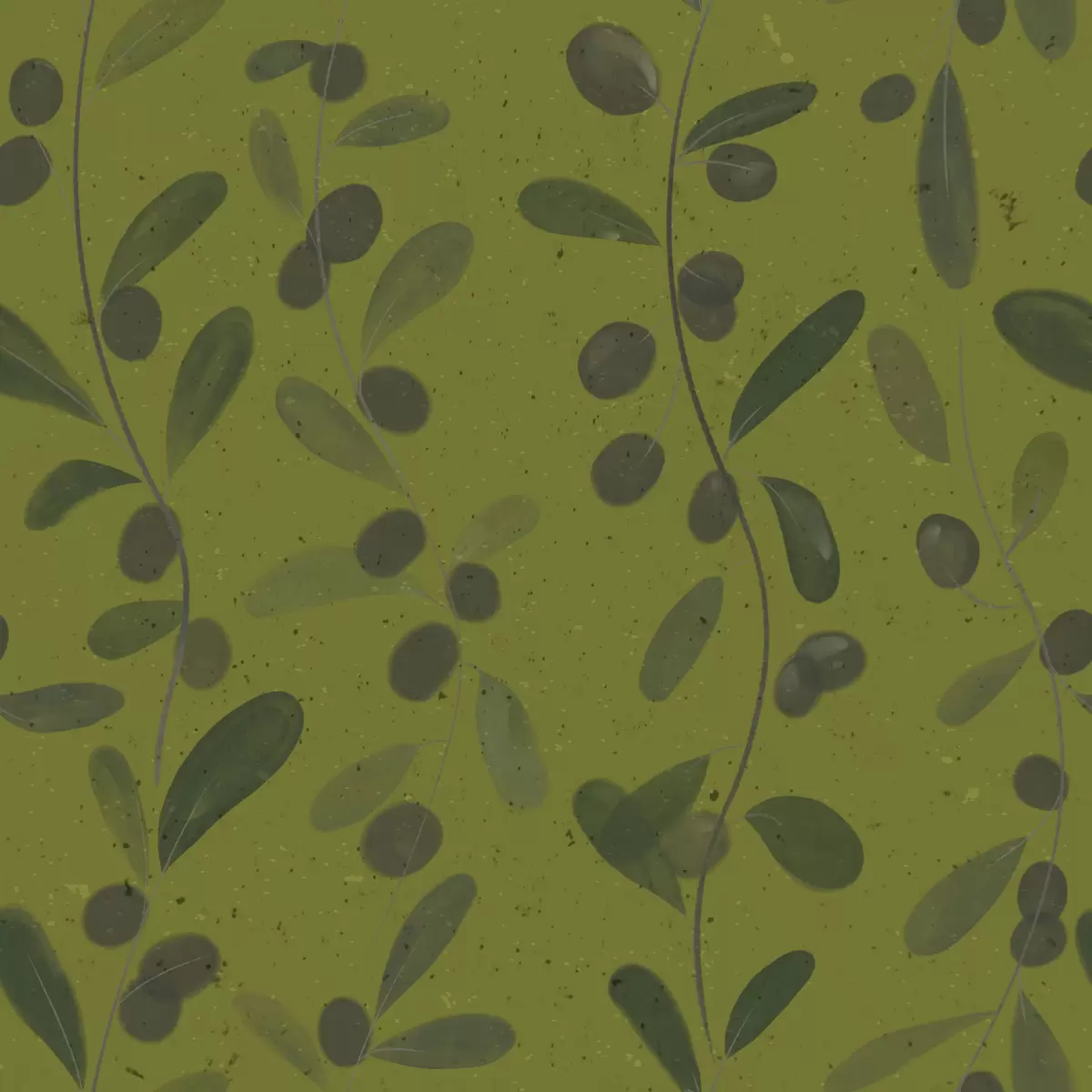 Tapeta Zelene veje z listi in jagodami na oljki Št. a01113