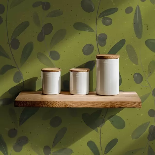 Tapeta Zelene veje z listi in jagodami na oljki Št. a01113