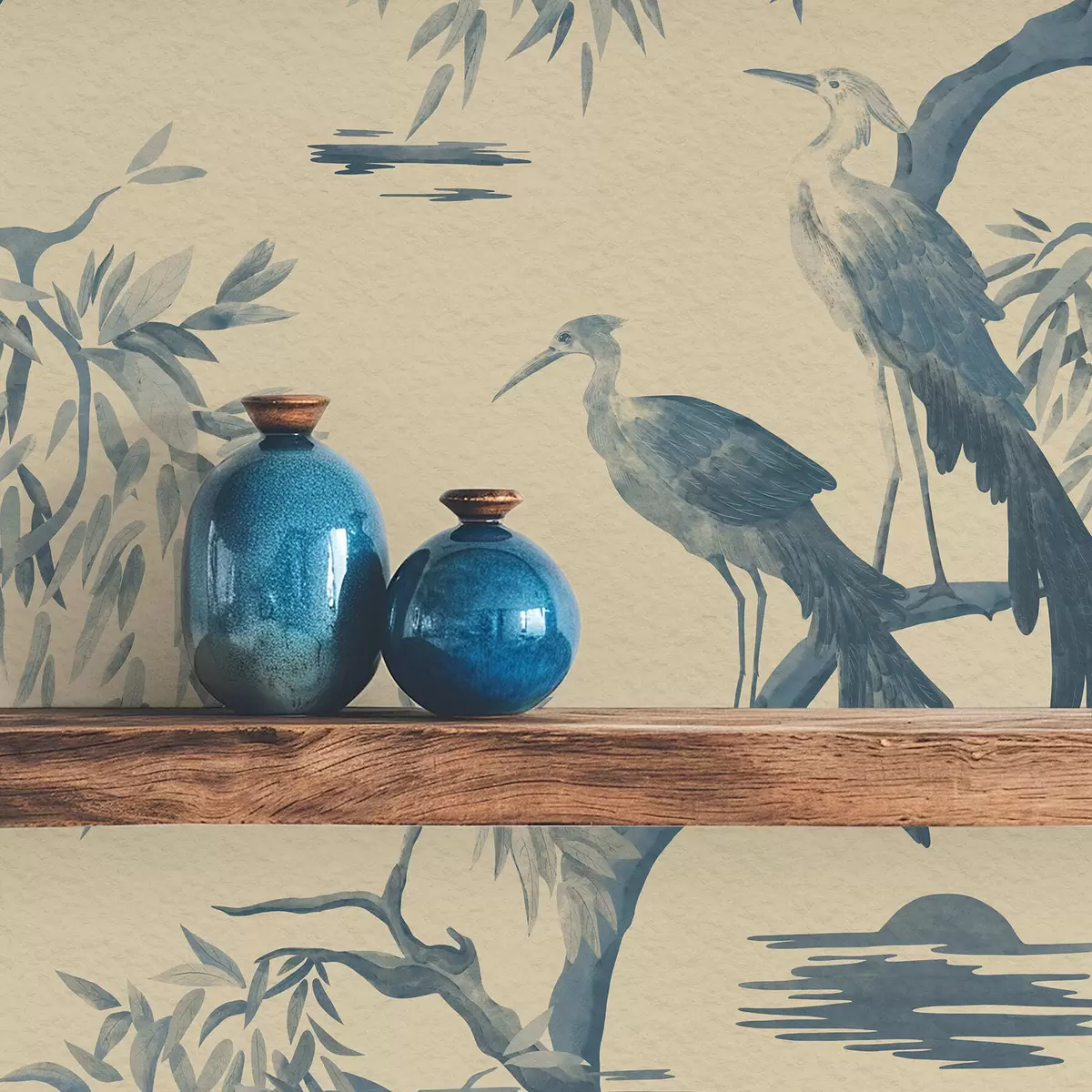 Tapeta Ptice na veji v modrih odtenkih Št. a01116