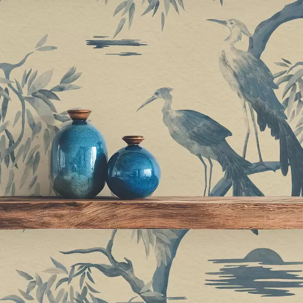 Tapeta Ptice na veji v modrih odtenkih Št. a01116