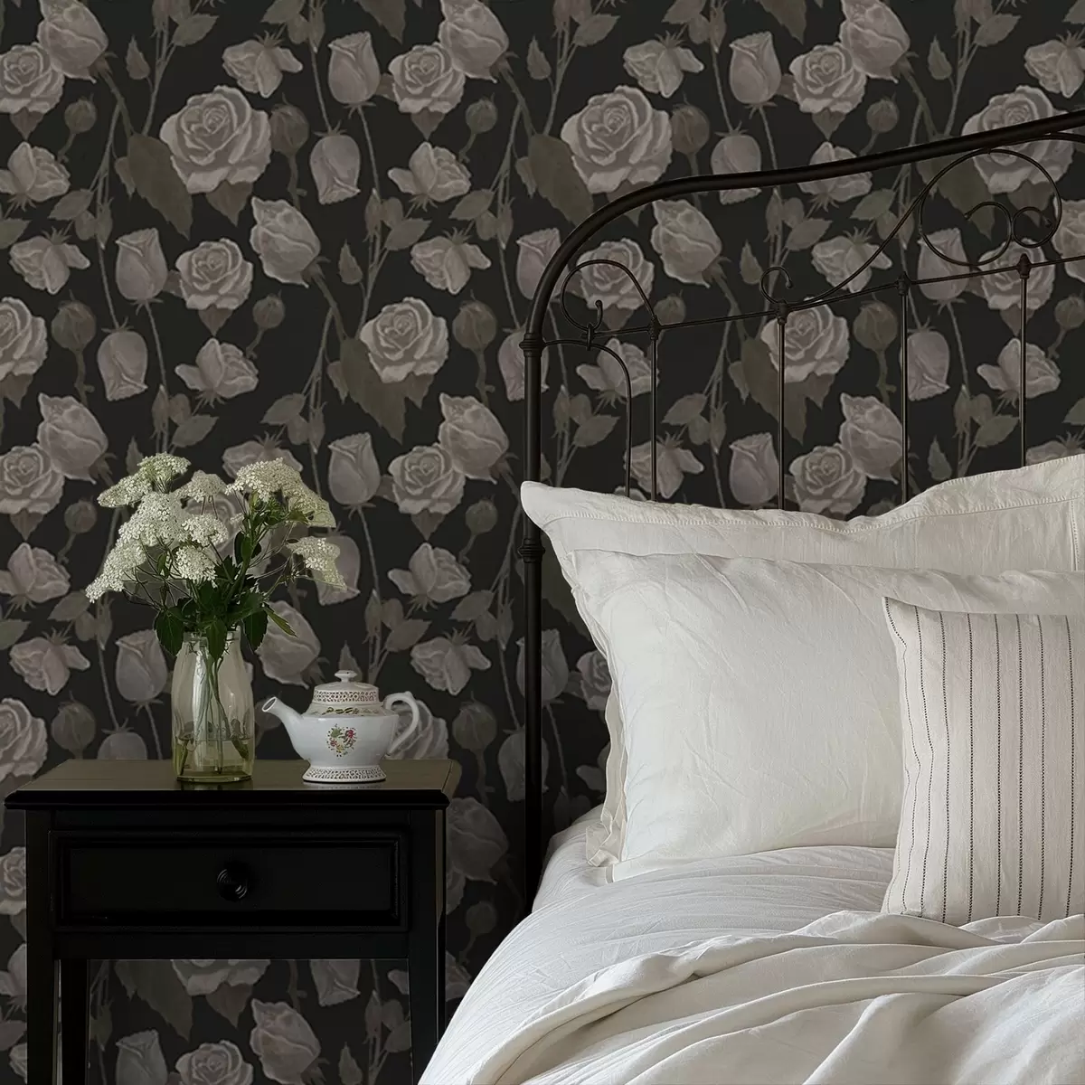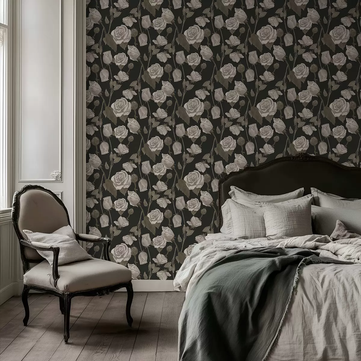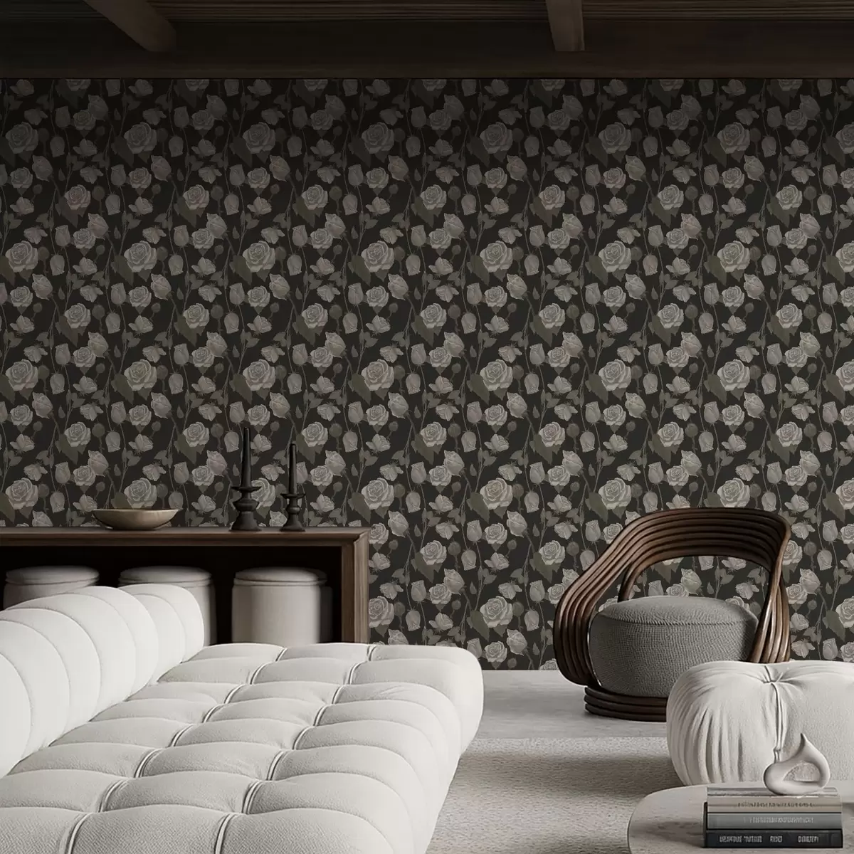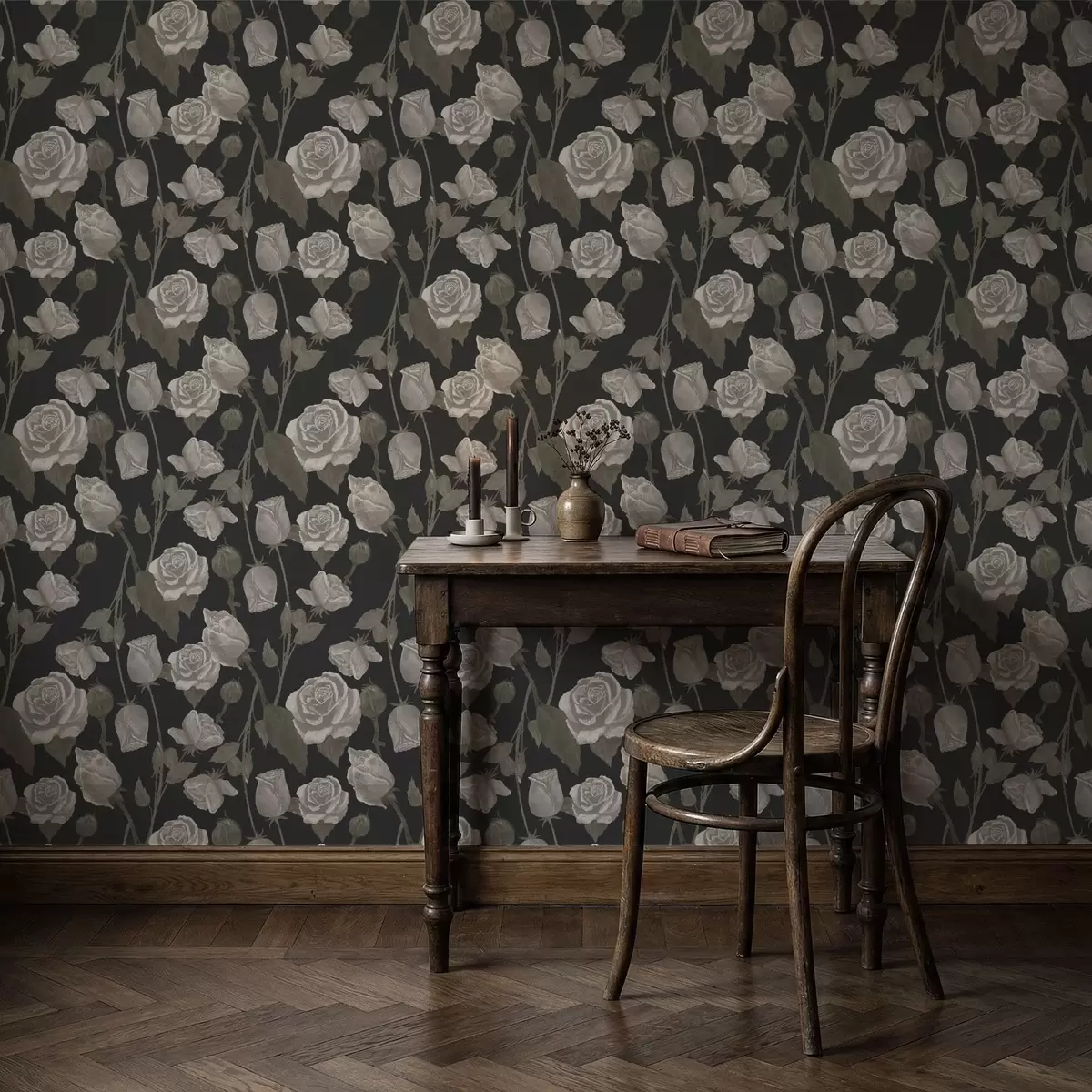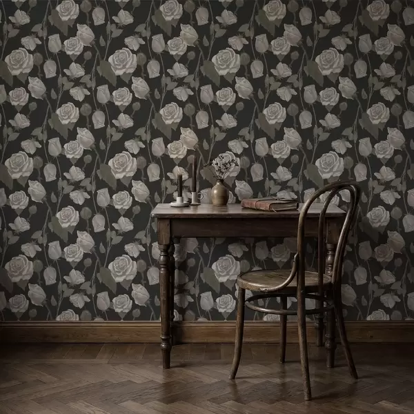 Tapeta Cvetlični vzorec z vrtnicami na temnem ozadju Št. a01123