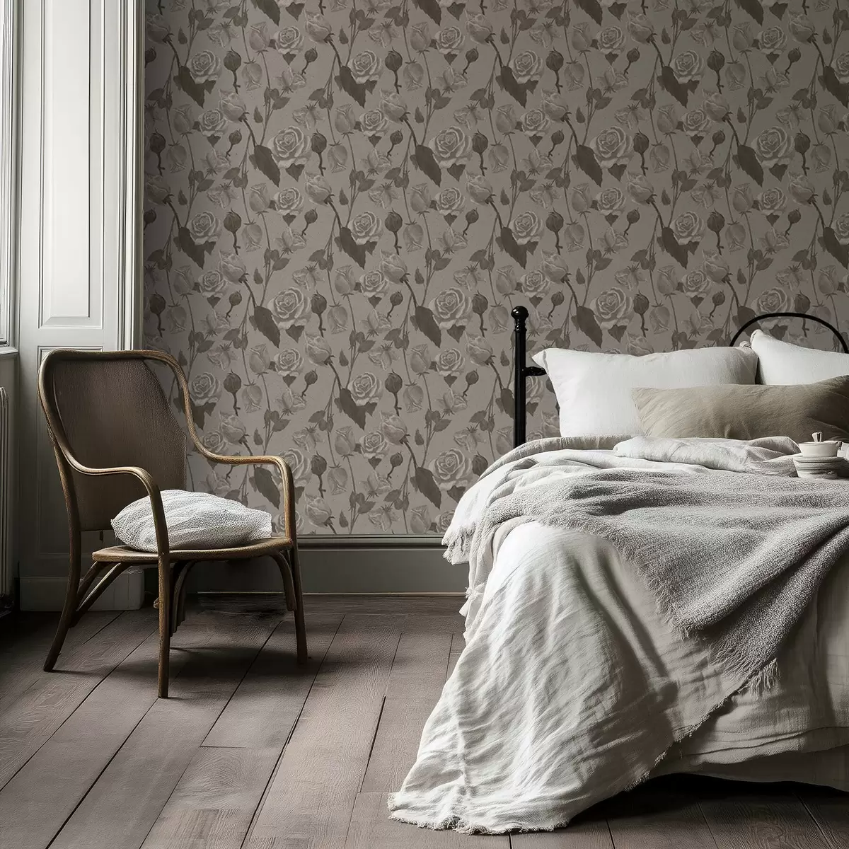 Tapeta Svetel cvetlični vzorec z vrtnicami Št. a01123v1