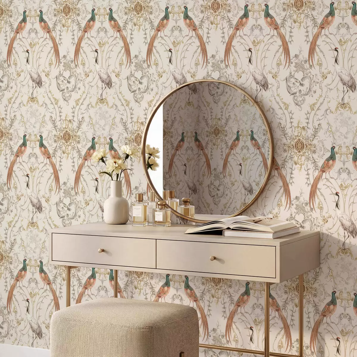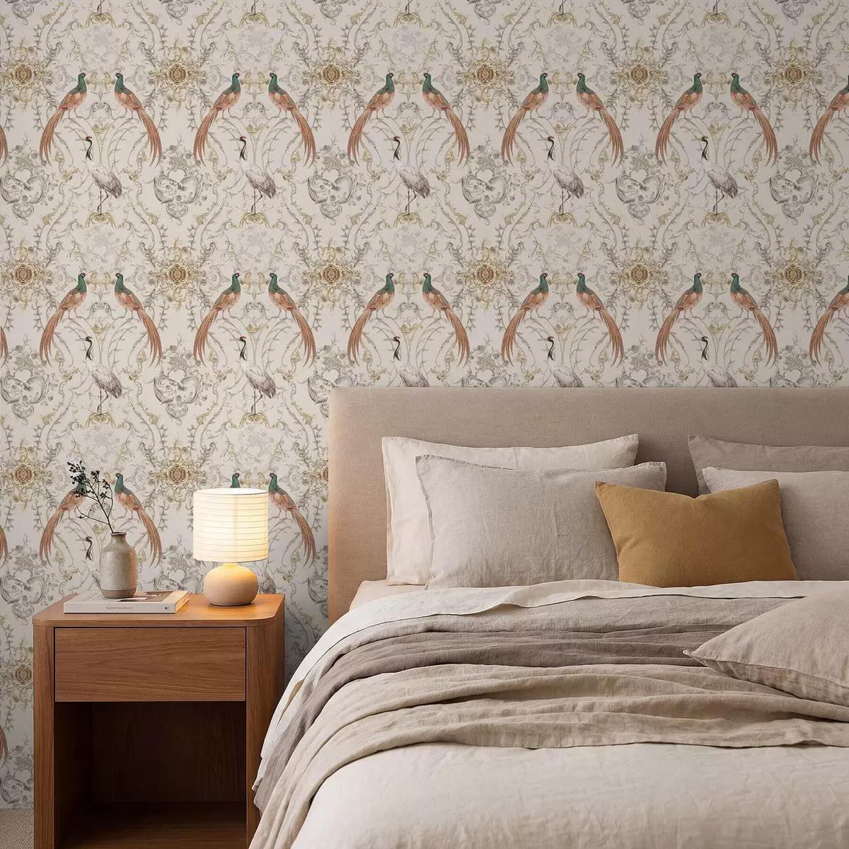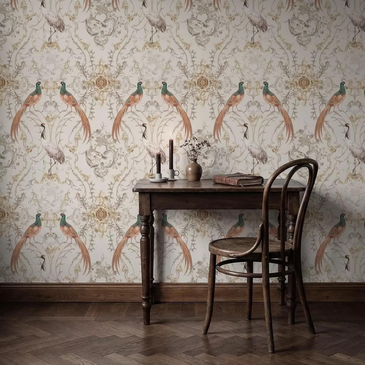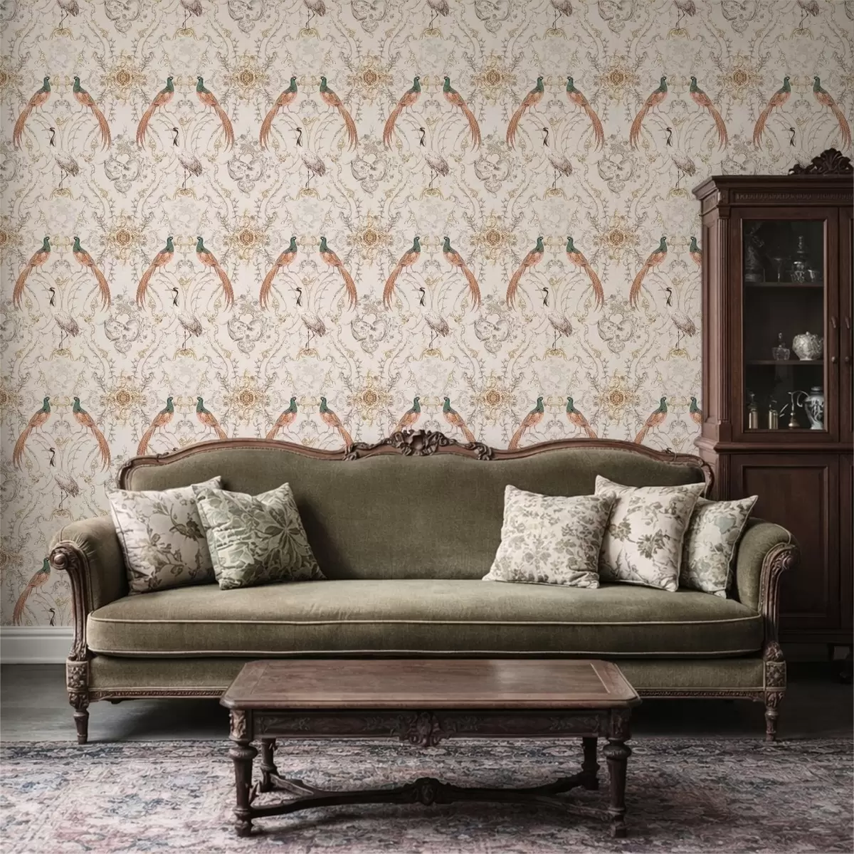 Tapeta Okrasni vzorec s pticami in motivi Št. a01156