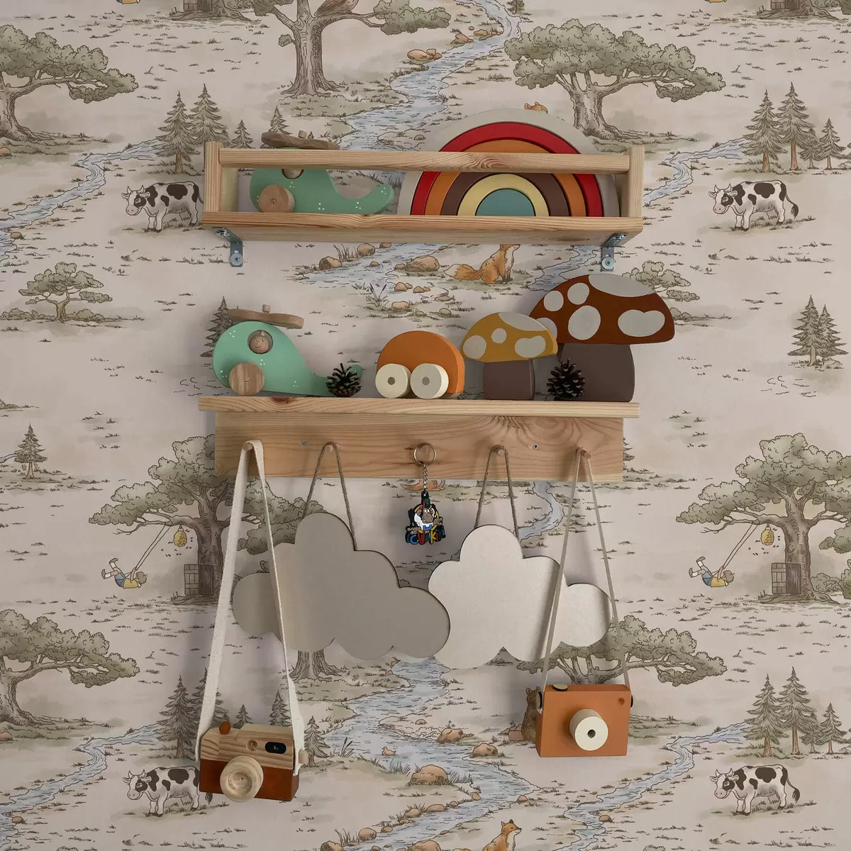 Tapeta Ilustracija narave z živalmi in reko Št. a01157
