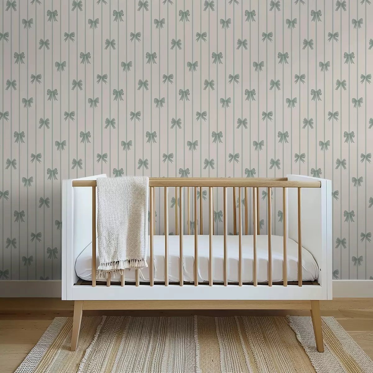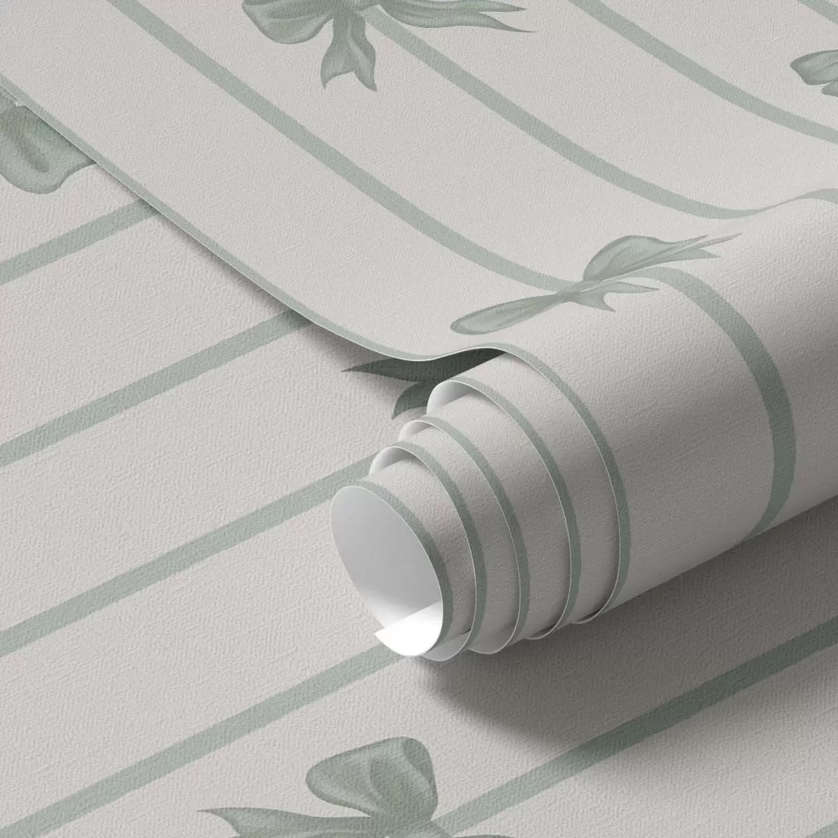 Tapeta Zelene pentlje na progastem bežem ozadju Št. a01162v1