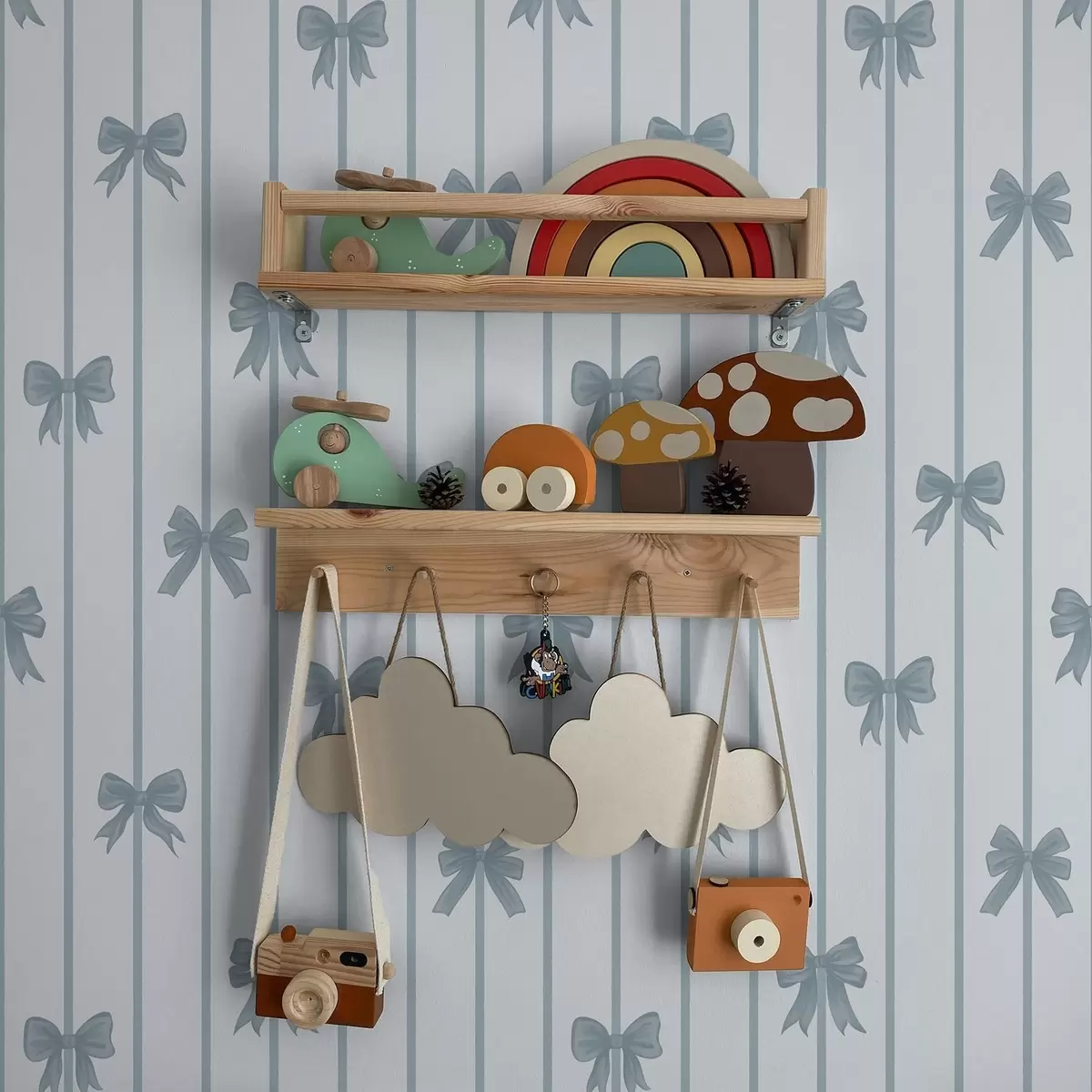 Tapeta Modri pentlji na svetlem progastem ozadju Št. a01162v2