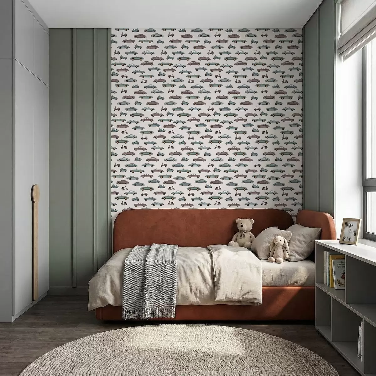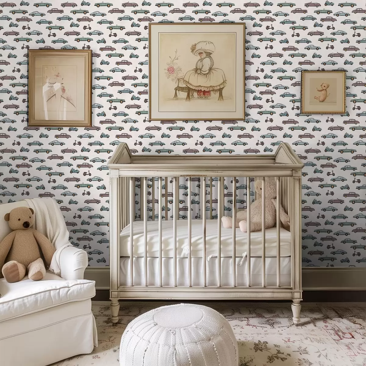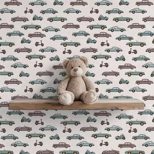 Tapeta Retro avtomobili in skuterji na svetlem ozadju Št. a01172