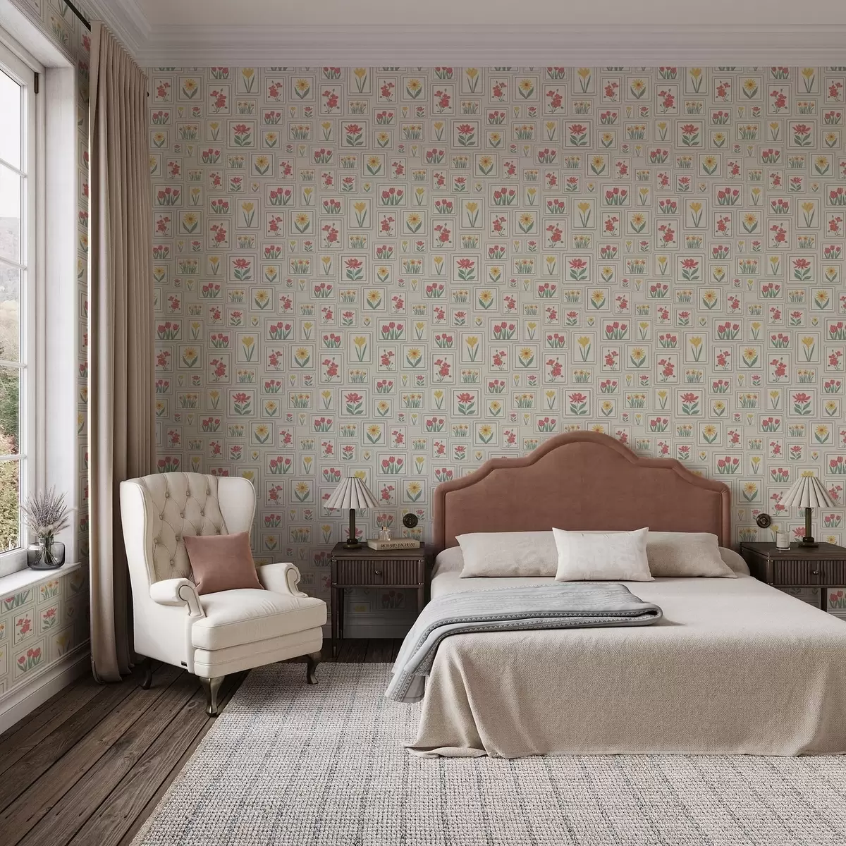 Tapeta Okvirjene cvetlične ilustracije na svetlem ozadju Št. a01173v1