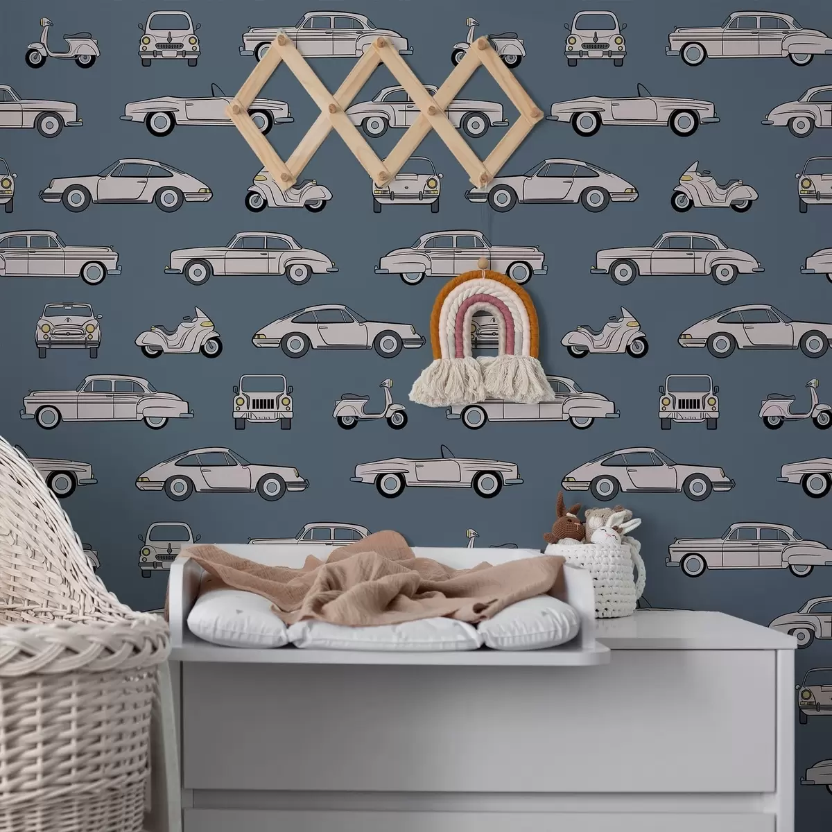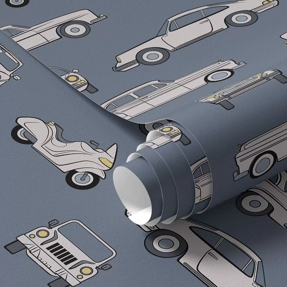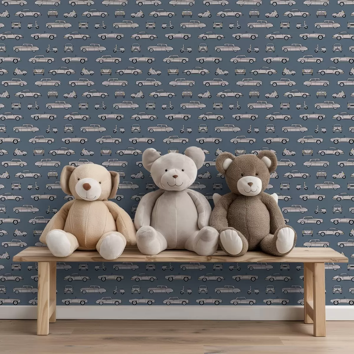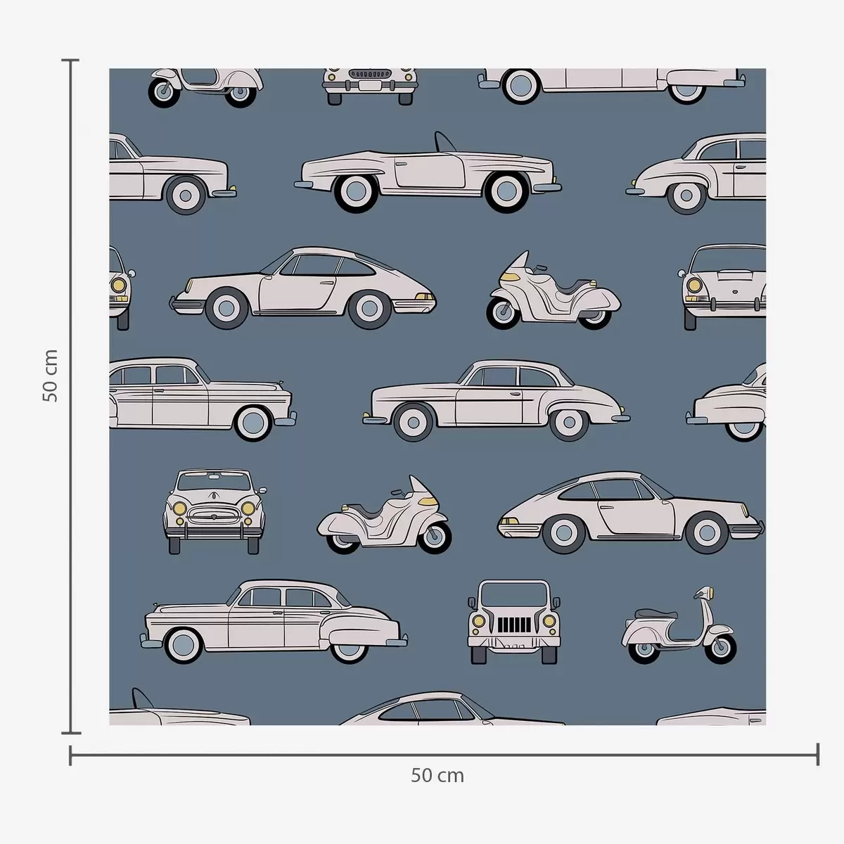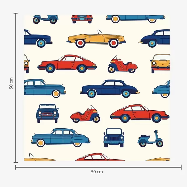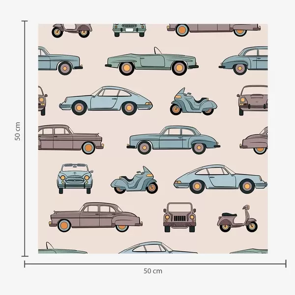 Tapeta Retro avtomobili in skuterji na modrem ozadju Št. a01178