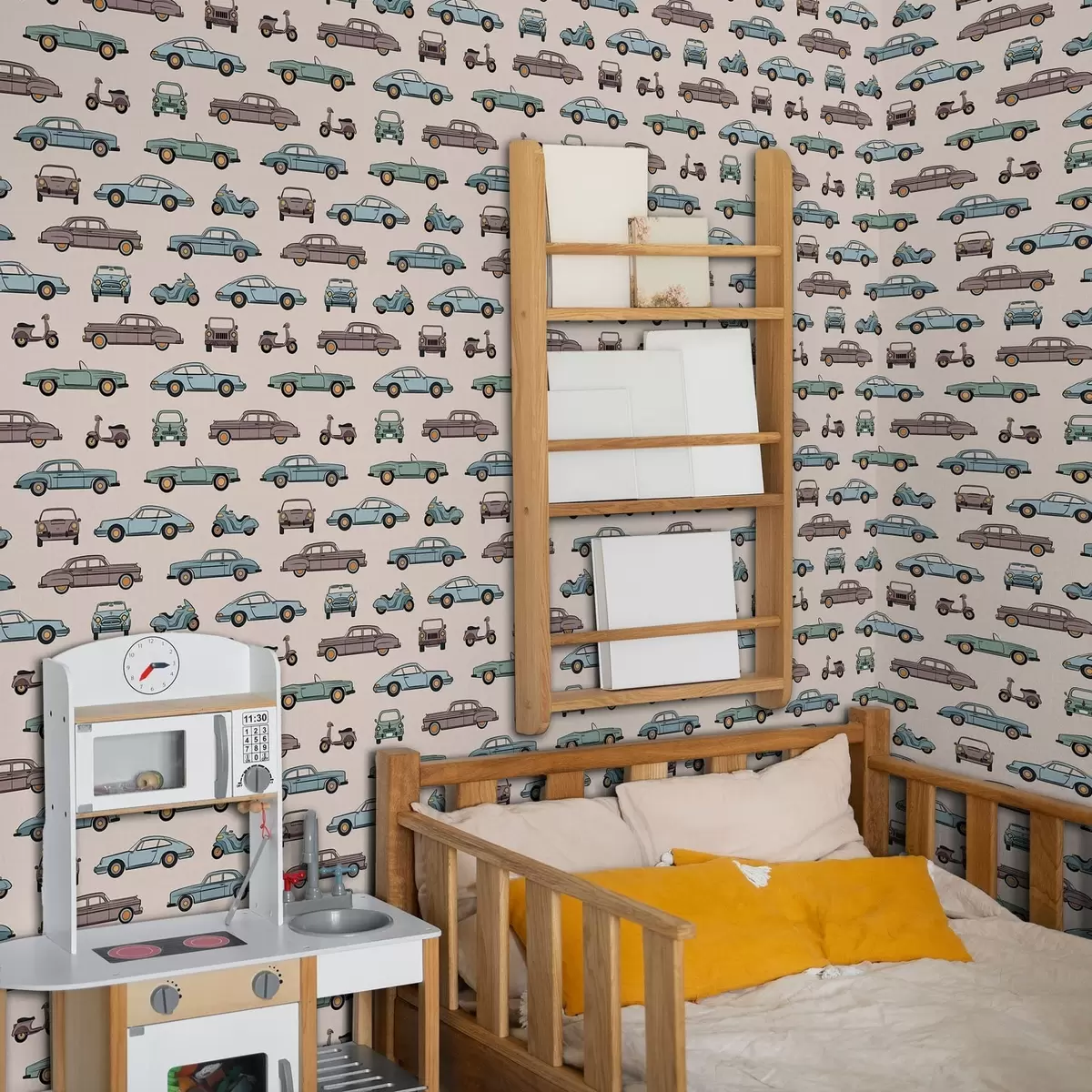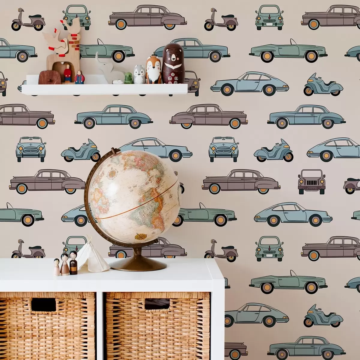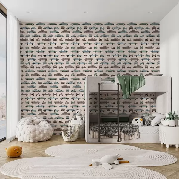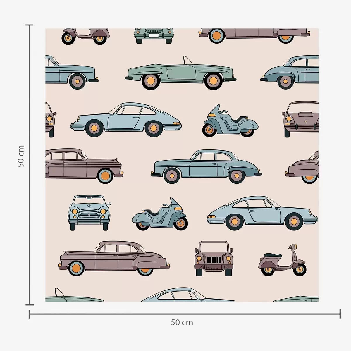 Tapeta Retro avtomobili in skuterji na bežnem ozadju Št. a01178v1
