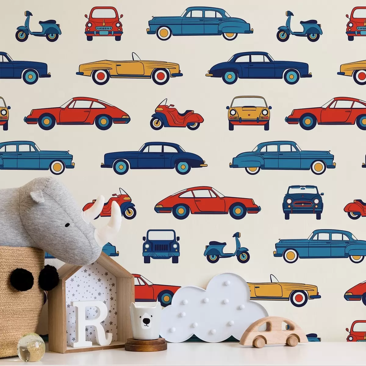 Tapeta Barviti avtomobili in skuterji v retro slogu Št. a01178v2