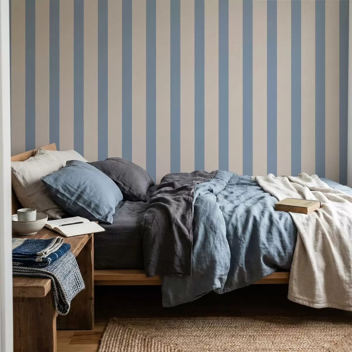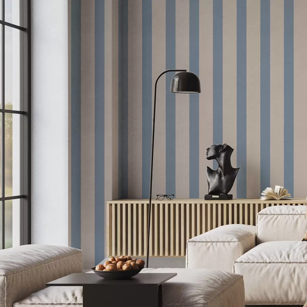 Tapeta Bež in svetlo modre navpične črte Št. a01180v3
